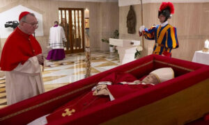 کیتھولک مسیحیوں کے روحانی پیشوا آنجہانی پوپ فرانسس کی آخری رسومات ہفتے کو ادا کی جائیں گی جن میں امریکی ڈونلڈ ٹرمپ اور خاتون اول کے علاوہ کئی ممالک کے سربراہان مملکت شرکت کریں گے۔ویٹی کن نے ایک بیان میں کہا ہے کہ پوپ فرانسس کی آخری رسومات ہفتہ 26 اپریل کو صبح 10 بجے سینٹ پیٹرز بیسلیکا میں ادا کی جائیں گی۔غیر ملکی میڈیا کے مطابق پوپ فرانسس کے آبائی ملک ارجنٹائن کے صدر جیویئر ملی، برازیل کے صدر لوئیز اناسیو ڈی سلوا اور یوکرین کے صدر ولادیمیر زیلنسکی بھی پوپ کی آخری رسومات میں شرکت کریں گے۔ویٹیکن نے اعلان کیا ہے کہ پوپ فرانسس کا تابوت کارڈینلز کے ہمراہ ایک جلوس کی شکل میں بدھ کی صبح 9 بجے پوپ کی رہائش گاہ سانتا مارٹا کے چیپل سے سینٹ پیٹر بیسلیکا منتقل کیا جائے گا۔پوپ کے انتقال پر صدیوں سے چلتی آرہی رسموں کا آغاز کیا جاتاہے جس میں سب سے پہلے پوپ کے انتقال کی اطلاع کیمر لنگو کو دی جاتی ہے ، وہ پوپ کے جسم کے قریب کھڑے ہو کر تین بار نام لے کر پوپ کو پکارتے ہیں اور اگر پوپ جواب نہیں دیتے تو انہیں مردہ قرار دیدیا جاتاہے اس کے بعد کارڈنلز کو اطلاع دی جاتی ہے اور پھر پوپ کے رہائشی کمرے بند کر دیئے جاتے ہیں۔ رسم کا ایک حصہ پوپ کی انگوٹھی کو توڑنا ہوتاہے کیونکہ یہ انگوٹھی پوپ کی طاقت کی علامت ہوتی ہے جس کا ٹوٹنا ان کے دور کے اختتام کی نشاندہی کرتا ہے روایتی طور پر پوپ کو تین تابوتوں میں دفن کیا جاتا ہے جن میں سائپرس ، سیسے اور بلوط کی لکڑی شامل ہے لیکن پوپ فرانسس نے ایک سادہ لکڑی کا انتخاب کیا اور ویٹکن سٹی سے باہر دفنانے کی وصیت کی اور وہ ایک صدی سے زائد عرصے کے دوران پہلے پوپ ہیں جنہیں ویٹیکن سے باہر دفنایا جائے گا ۔