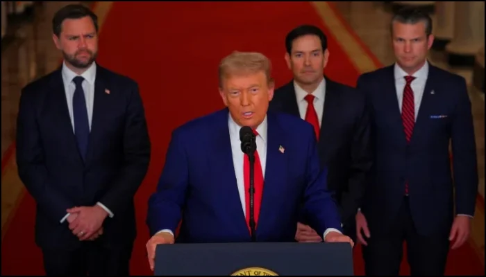 امریکی صدر ڈونلڈ ٹرمپ نے کہا ہے کہ ایران کو اب امن قائم کرنا ہوگا اور اگر انہوں نے ایسا نہیں کیا تو آئندہ حملے کہیں زیادہ بڑے ہوں گے اب یا تو امن آئے گا، یا ایران کے لیے ایسا سانحہ ہوگاجو پچھلے 8 دنوں میں ہم نے نہیں دیکھا۔ امریکی صدر ڈونلڈ ٹرمپ نے ایران پر امریکی حملوں کے بعد قوم سے تقریباً 3 منٹ کا مختصر خطاب کیا جس میں انہوں نے ایران کے خلاف کارروائی کو تاریخی قرار دیا۔ٹرمپ نے اپنے مختصر خطاب کے دوران تصدیق کی ہے کہ امریکہ نے ایران میں فردو، نطنز اور اصفہان میں جوہری تنصیبات کو نشانہ بنایا ہے۔ٹرمپ نے خبردار کیا کہ اب یا تو امن قائم ہو گا یا ایران کے لیے ایک ایسا سانحہ ہو گا جو گذشتہ آٹھ دنوں سے بہت بڑا ہو گا۔ یاد رکھیں کہ ابھی بہت سارے اہداف ایسے ہیں جنھیں نشانہ نہیں بنایا گیا۔ آج رات ہم نے سب سے مشکل ہدف کو نشانہ بنایا۔ لیکن اگر امن قائم نہیں ہوتا تو ہم دیگر اہداف کو درستگی رفتار اور کامیابی سے نشانہ بنائیں گے۔صدر ٹرمپ نے کہا کہ ہمارا مقصد ایران کی جوہری افزودگی کی صلاحیت کو مکمل طور پر تباہ کرنا اور اس ریاست کے ہاتھوں دنیا کو درپیش جوہری خطرے کا خاتمہ تھس جو دہشت گردی کی سب سے بڑی سرپرست ہے۔صدر ٹرمپ نے کہا کہ ہم نے ایک ہزار سے زیادہ افراد کھوئے اور مشرق وسطیٰ و دنیا بھر میں لاکھوں افراد ان کی نفرت کا نشانہ بنے ان میں سے بے شمار ان کے جنرل قاسم سلیمانی کے ہاتھوں مارے گئے میں نے بہت پہلے فیصلہ کر لیا تھا کہ یہ مزید نہیں ہونے دوں گا اور یہ اب نہیں چلے گا۔صدر ٹرمپ نے چیئرمین جوائنٹ چیفس آف اسٹاف جنرل ڈین ریزن کین اور اس حملے میں شامل تمام عسکری ذہنوں کو بھی مبارکباد دی۔