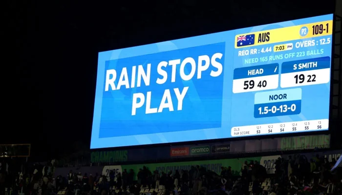 آئی سی سی چیمپئنز ٹرافی کے گروپ بی کا افغانستان اور آسٹریلیا کے اہم میچ بارش کی وجہ سے ختم کردیا گیا۔آسٹریلیا اور افغانستان کو ایک ایک پوائنٹ مل گیا۔ میچ کے نتیجے کے لیے 20 اوورز کا کھیل ہونا ضروری تھا اگر میچ ہار جیت کے فیصلے بغیر ختم ہوتا ہے تو آسٹریلیا 4 پوائنٹس کے ساتھ سیمی فائنل کے لیے کوالیفائی کر جائے گا۔گروپ بی میں یہ دوسرا میچ ہے جو بارش سے متاثر ہوا اس سے قبل 25 فروری کو آسٹریلیا اور جنوبی افریقا کو بھی بارش کے باعث ایک ایک پوائنٹ ملا تھا۔افغانستان کے 3 میچز کے بعد 3 پوائنٹس ہیں جبکہ جنوبی افریقا کے 2 میچز کے بعد 3 پوائنٹس ہیں۔افغانستان کو ایونٹ میں اپنے آگے کے سفر کے لیے جنوبی افریقا کی شکست سے امید لگانی ہوگی۔افغانستان کی ٹیم نے ٹاس جیت کر پہلے بیٹنگ کا فیصلہ کیا مقررہ 50 اوورز میں 273 رنز پر آل آوٹ ہوگئی۔بارش کی مداخلت سے قبل 274 رنز کے ہدف کے تعاققب میں آسٹریلیا نے 12 اعشاریہ 5 اوورز میں 1 وکٹ پر 109 رنز بنالیے تھے۔اگلے میچ میں اگر جنوبی افریقہ انگلینڈ کو شکست دیتا ہے تو وہ 5 پوائنٹس کے ساتھ گروپ میں سرفہرست ہو جائے گا تاہم انگلینڈ کے جیتنے کی صورت میں جنوبی افریقہ اور افغانستان کے تین تین پوائنٹس ہوں گے۔اور سیمی فائنل میں پہنچنے کا فیصلہ رن ریٹ کی بنیاد پر ہوگا افغانستان کا نیٹ رن ریٹ منفی 0.99 ہے جس کے بعد ان کے سیمی فائنل میں رسائی انتہائی مشکل ہوگی کیونکہ اسے کوالیفائی کرنے کے لیے جنوبی افریقہ کو کم از کم 301 رنز کے تعاقب میں 207 رنز سے ہارنا ہو گا۔