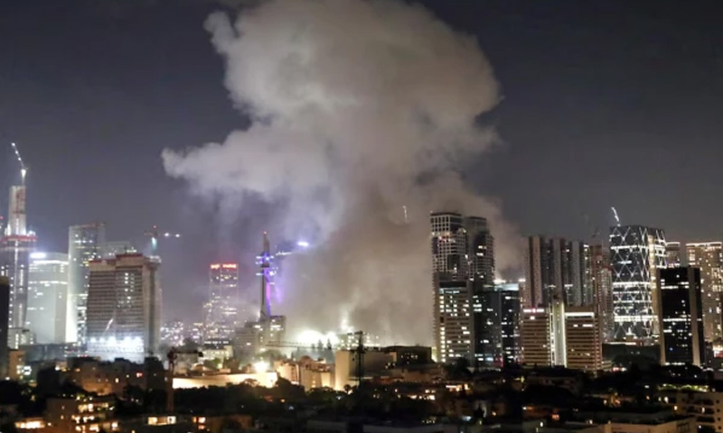 تہران نے تل بیب سمیت اسرائیل کے مختلف علاقوں میں میزائلوں کی برسات کا اٹھارہواں مرحلہ مکمل کرلیا جس میں فوجی مراکز، فضائی اڈے، کمانڈ اینڈ کنٹرول مراکز کو نشانہ بنایا گیا۔اسرائیلی میڈیا کے مطابق دارالحکومت تل ابیب میں زوردار دھماکے سنے گئے ایران سے رات فائر کیے گئے میزائل وسطی اسرائیل کے علاقے ڈین گش میں بھی گرے۔خاتم الانبیا ہیڈکوارٹر کی جانب سے نئی کارروائیوں میں صہیونی فوجی مراکز، دو فضائی اڈے، دفاعی صنعتیں اور کمانڈ اینڈ کنٹرول مراکز کو نشانہ بنانے کا دعویٰ کیا گیا ہے۔اسرائیلی میڈیا کا کہنا ہے کہ میزائل کے ٹکڑے لگنے سے ڈین گش میں رہائشی عمارت میں آگ لگ گئی.ایران نے اسرائیل کےفوجی اڈوں اوردمونا میں ایٹمی ری ایکٹرکو بھی نشانہ بنانےکا دعویٰ کیا ہے،ایران کے میزائل حملوں میں وسطی اسرائیل میں عمارت میں آگ بھڑک اٹھی اسرائیلی جنرل نےانتباہ کیا ہے کہ ایران کے ساتھ جنگ طویل ہوسکتی ہےعوام تیار رہیں،مزید مشکل دن آنیوالے ہیں۔خبر رساں اداروں کے مطابق یروشلم اور تل ابیب کے مختلف علاقوں میں زور دار دھماکوں کی آوازیں سنی گئیں