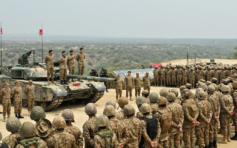 آرمی چیف جنرل عاصم منیر نے بھارت کو واضح پیغام دیتے ہوئے کہاہے کہ کسی کو غلط فہمی نہ ہو بھارت کی جانب سے کسی بھی فوجی مہم جوئی کا فوری، فیصلہ کن اور منہ توڑ جواب دیا جائے گا پاکستان خطے میں امن کا خواہاں ضرور ہے لیکن قومی مفادات کے تحفظ کے لیے ہماری تیاری اور عزم غیر متزلزل ہے۔پاک فوج کے شعبہ تعلقات عامہ آئی ایس پی آر کے مطابق آرمی چیف جنرل سید عاصم منیر نے ٹلہ فیلڈ فائرنگ رینج کا دورہ کیا اور ہیمر اسٹرائیک مشق کا مشاہدہ کیا جہاں پاک فوج کی منگلا اسٹرائیک کور کی جانب سے فیلڈ ٹریننگ مشق کی گئی۔اس موقع پر خطاب کرتے ہوئے آرمی چیف جنرل عاصم منیر نے کہا کہ کسی کو غلط فہمی نہ ہو بھارت کی جانب سے کسی بھی فوجی مہم جوئی کا فوری ،فیصلہ کن اورمنہ توڑ جواب دیا جائے گا۔ پاکستان خطے میں امن کا خواہاں ضرور ہے لیکن قومی مفادات کے تحفظ کے لیے ہماری تیاری اور عزم غیر متزلزل ہے۔ پاکستان خطے میں امن کا خواہاں ہے اور علاقائی امن کیلئے پرُعزم ہے مسلح افواج ہر قیمت پر قومی خود مختاری اور سرحدوں کی حفاظت کرے گی کوئی شک میں نہ رہے پوری قوت سے فوری جواب دیا جائے گا۔آرمی چیف نے افسروں اور جوانوں کے جذبے کو پاک فوج کی آپریشنل مہارت قرار دیا اور ان کےلڑنےکی صلاحیت اور حربی جذبےکو سراہا۔ اعلیٰ فوجی قیادت، فارمیشن کمانڈرز اور مختلف شعبوں سے تعلق رکھنے والے شرکاء نے مشق کا مشاہدہ کیا۔