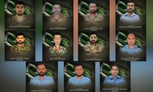 پاک فوج کے شعبہ تعلقات عامہ نے بھارت کے خلاف معرکہ حق کے دوران اپنی جانوں کا نذرانہ دینے والے شہدا اور زخمیوں کی تفصیلات جاری کردیں۔آئی ایس پی آر کے مطابق معرکہ حق کے دوران وطن کا تحفظ کرتے ہوئے 11 جوانوں نے جام شہادت نوش کیا جبکہ عام شہریوں پر جارحیت کا جواب دیتے ہوئے 78 اہلکار زخمی بھی ہوئےجبکہ بھارتی جارحیت کے نتیجے میں 40 پاکستانی شہری شہید ہوئے جن میں 7 خواتین اور 15 بچے شامل ہیں، جب کہ 121 افراد زخمی ہوئے جن میں 10 خواتین اور 27 بچے بھی شامل ہیں۔آئی ایس پی آر کے مطابق بھارتی حملوں میں جام شہادت نوش کرنے والوں میں پاک فضائیہ کے اسکواڈرن لیڈر عثمان یوسف، چیف ٹیکنیشن اورنگزیب، سینئر ٹیکنیشن نجیب، کارپورل ٹیکنیشن فاروق اور سینئر ٹیکنیشن مبشر شامل ہیں جبکہ پاک فوج کے شہید ہونے والے میں نائیک عبدالرحمان اور نائیک وقار خالد شامل ہیں۔ لانس نائیک دلاور خان، اکرام اللہ، سپاہی عدیل اکبر اور نثار بھی وطن پر قربان ہوگئے۔آئی ایس پی آر کی جانب سے جاری بیان میں کہا گیا ہے کہ شہداء قوم کا فخر ہیں قربانی ہمیشہ یاد رکھی جائے گی زخمیوں کی جلد صحت یابی کے لیے دعاگو ہیں قوم جارحیت کے سامنے پرعزم ہے اس میں کوئی ابہام نہیں رہنا چاہیے۔ پاکستان کی خودمختاری پر کوئی سمجھوتہ نہیں کیا جائے گا آئندہ کسی بھی جارحیت کا فیصلہ کن جواب دیا جائے گا۔