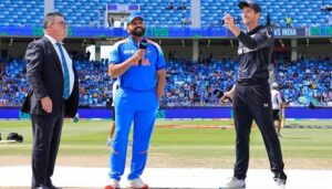 آئی سی سی چیمپئنز ٹرافی 2025 کے دبئی میں کھیلے جانے والے بھارت اور نیوزی لینڈ کے میچ میں نیوزی لینڈ نے ٹاس جیت کر بھارت کو بیٹنگ کی دعوت دے دی۔دونوں ٹیمیں دبئی اسٹیڈیم میں مدمقابل ہیں جہاں یہ میچ ٹورنامنٹ میں صرف ایک رسمی میچ ہے کیونکہ دونوں ٹیمیں پہلے ہی سیمی فائنل کے لیے کوالیفائی کر چکی ہیں۔تاہم یہ میچ اس لیے اہم ہے کہ اس کے نتیجے کے بعد پوائنٹس ٹیبل پر ٹیموں کی پوزیشن واضح ہوجائے گی۔اس میچ کے بعد پتہ چلے گا کہ کون سی ٹیم سیمی فائنل میں کس سے مقابلہ کرے گی۔ٹاس کے بعد گفتگو کرتے ہوئے بھارتی ٹیم کے کپتان روہت شرما نے کہا کہ ہم بھی پہلے بیٹنگ کرنا چاہتے تھے۔ انہوں نے بتایا کہ ہرشیت رانا کی جگہ ورون چکراورتھی ٹیم شامل ہیں۔ نیوزی لینڈ کے کپتان مچل سینٹنر نے کہا کہ ٹیم میں ایک تبدیلی کی ہے ڈیون کونوے کی جگہ ڈیرل مچل کو شامل کیا ہے۔یاد رہے کہ ٹورنامنٹ کے سیمی فائنل میں بھارت، نیوزی لینڈ، آسٹریلیا اور جنوبی افریقا پہنچ چکی ہیں۔