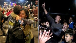 اسرائیل اور حماس کا غزہ میں جنگ بندی اور یرغمالیوں کی رہائی پر اتفاق ہوگیا ہے۔قطر ،امریکا اور فلسطینی تنظیم نے تصدیق کر دی۔اسرائیل کا کہنا ہے کہ معاہدے کی تفصیلات کو ابھی واضح طور پر بیان کیا جانا باقی ہے ۔جنگ بندی کی خبر آتے ہی غزہ میں جشن کا سماں پیدا ہوگیا ۔فلسطینی ایک دوسرے سے گلے مل کر مبارکباد دیتے رہے۔معاہدے پر عملدرآمد اتوار انیس جنوری سے شروع ہوگا.قطر کے وزیر اعظم شیخ محمد بن عبدالرحمن الثانی نے اعلان کیا کہ مشترکہ میڈیا کوششوں کی کامیابی اور اس حقیقت کا اعلان کرتے ہوئے بہت خوشی ہے کہ غزہ میں فریق قیدیوں اور یرغمالیوں کے تبادلے کے ایک معاہدے پر پہنچ گئے ہیں اور فریقین نے مستقل جنگ بندی کی امید پر معاہدے کیا ہے۔قطری وزیر اعظم شیخ محمد بن عبدالرحمن الثانی کا کہنا تھا کہ حماس غزہ جنگ بندی معاہدے کے تحت 33 اسرائیلی یرغمالیوں کو رہا کرے گی جن میں شہری خواتین، بچے، بوڑھے، بیمار اور زخمیوں شامل ہیں جبکہ اس کے بدلے اسرائیلی حراست میں قیدیوں کی غیر متعین تعداد کو چھوڑا جائے گا۔انہوں نے مزید کہا کہ جنگ بندی معاہدے کے دوسرے اور تیسرے مرحلے کے بارے تفصیلات کو پہلے مرحلے کے نفاذ کے دوران حتمی شکل دی جائے گی۔معاہدے کے تحت ابتدا ئی طور پر غزہ میں جاری لڑائی میں چھ ہفتے کا وقفہ ہوگاان بیالیس دنوں کے دوران تقریباً ایک سو یرغمالیوں میں سے تینتیس رہا کیے جائیں گے جن میں دو امریکی بھی شامل ہونگےجن کے بدلے اسرائیل مجموعی طور پر ایک ہزار چھ سو پچاس فلسطینی قیدیوں کو رہا کرے گا.پہلے مرحلے میں حماس انیس سال سے کم عمر یرغمالیوں کو رہا کرے گی ہر یرغمالی کے بدلے اسرائیل تیس فلسطینی قیدی رہا کرے گا ہر اسرائیلی خاتون فوجی قیدی کے بدلے پچاس فلسطینی قیدی رہا کیے جائیں گے.اب تک سامنے آنے والی تفصیلات کے مطابق میں معاہدے میں کہا گیا ہے کہ اسرائیلی فوج فیلے ڈیلفیا اور نیتساریم راہداریوں سے مکمل انخلا کرے اوریومیہ چھ سو امدادی سامان سے لدے ٹرکوں کو غزہ پٹی میں داخلے کی اجازت دے گا۔دوسرے مرحلے میں حماس فوجی یرغمالیوں کو رہا اور اسرائیلی فوج غزہ پٹی سے مکمل انخلا کرے.