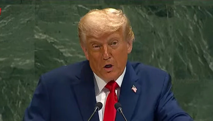 امریکی صدر ڈونلڈ ٹرمپ نے اقوام متحدہ کی جنرل اسمبلی سے خطاب کرتے ہوئے کہا کہ وہ غزہ میں جنگ بندی کے حصول کی کوششوں کا حصہ رہے ہیں تا کہ مذاکرات کرنے والے فریقین اس ہدف کو حاصل کر لیں۔انھوں نے کہا کہ حالیہ دنوں میں کئی طاقتور ممالک نے فلسطینی ریاست کو تسلیم کیا ہے۔ٹرمپ کا کہنا ہے کہ حماس کے مظالم کا یہ انعام ہو گا۔اقوام متحدہ کی جنرل اسمبلی کے 80 ویں اجلاس سے خطاب کرتے ہوئے ڈونلڈ ٹرمپ نے کہا کہ چھ سال پہلے میں نے جنرل اسمبلی سے آخری خطاب کیا تھا اس کے بعد سے دو براعظموں میں جنگوں نے امن و امان کو تاراج کردیا اور شدید بحرانوں نے جنم لیا۔امریکی صدر نے مزید کہا کہ اقوامِ متحدہ نے ان میں سے کسی تنازعے میں کے حل کے لیے تو کوشش تک نہیں کی۔صدر ٹرمپ نے اقوام متحدہ پر بھی تنقید کی اور کہا کہ اقوام متحدہ کے پاس زبردست صلاحیت موجود ہے لیکن افسوس کہ یہ ادارہ اپنی اس صلاحیت کو مکمل طور پر بروئے کار لانے کے قابل نہیں رہا۔انہوں نے کہا کہ عالمی برادری کو بامعنی اور نتیجہ خیز سفارت کاری کی جانب لوٹنا ہوگا اور امریکا اس مشن میں اپنا کردار ادا کرتا رہے گا۔امریکی صدر ڈونلڈ ٹرمپ نے اقوام متحدہ کی جنرل اسمبلی سے خطاب کرتے ہوئے غز ہ میں جاری جنگ پر تشویش کا اظہار کیا اور امن کے لیے فوری اقدامات کی ضرورت پر زور دیااور کہا کہ ہمیں غزہ میں جنگ ختم کرنی چاہیے امن کے لیے بات چیت کرنی چاہیے۔صدر ٹرمپ نے واضح موقف اپناتے ہوئے کہا کہ ہمیں حما س کے مطالبات کے سامنے سرنڈر نہیں کرنا چاہیے جنگ بندی کا معاہدہ حماس کی ہٹ دھرمی کی وجہ سے نہیں ہو پایا۔ان کا مزید کہنا تھا کہ فلسطینی ریاست قائم ہونی چاہیے لیکن حما س کی گنجائش نہیں۔انہوں نے کہا کہ ایک سال قبل گذشتہ انتظامیہ کے تحت امریکا شدید مشکلات کا شکار تھا میرے عہدہ صدارت سنبھالنے کے صرف آٹھ ماہ بعد حالات تبدیل ہوگئے اور اب امریکا دنیا کا پسندیدہ ترین ملک ہے۔انہوں نے کہا کہ بائیڈن انتطامیہ سے ہمیں معاشی بربادی ورثے میں ملی، مگر آج امریکی معیشت دنیا کی مضبوط ترین معیشت اور ہماری فوج دنیا کی مضبوط ترین فوج ہے اور یہ درحقیقت امریکا کا سنہرا دور ہے۔ڈونلڈ ٹرمپ نے کہا کہ امریکا میں مہنگائی میں کمی ہوئی ہے سرمایہ کاری بڑھ رہی ہے امریکا کی معیشت مضبوط اور سرحدیں محفوظ ہیں اگر کوئی غیر قانونی طور پر امریکا میں داخل ہوا تو اس کو جیل جانا پڑے گا۔امریکی صدر نے مزید کہا کہ سات ماہ کے عرصے میں میں نے نہ ختم ہونے والی سات جنگیں ختم کروائیں ان میں سے دو جنگیں 31 سال سے چلی آرہی تھیں افسوس ہوا کہ اقوام متحدہ کے بجائے مجھےجنگیں بند کروانی پڑیں میں نے پاک بھارت جنگ بند کروائی۔امریکی صدر ڈونلڈ ٹرمپ نے کہا کہ ایران کو کبھی بھی جوہری ہتھیار حاصل کرنے نہیں دیں گے اس کے بعد امریکی صدر ٹرمپ نے ایرانی جوہری تنصیبات پر امریکہ کے حملے کا ذکر کیا اور بتایا کہ انھوں نے اس سال کے شروع میں ایران کی ایک اہم جوہری تنصیب پر بمباری کا حکم دیا تھا۔انھوں نے کہا کہ ہم نے وہ کام کیا جو لوگ 22 سال سے کرنا چاہتے تھے۔روس کے حوالے سے اظہارخیال کرتے ہوئے امریکی صدر نے کہا کہ سمجھتا تھا پیوٹن سے تعلقات کی وجہ سے یوکرین جنگ روکنا آسان ہوگا اگر روس یوکرین جنگ بند کرنےکیلئے راضی نہیں تو ٹیرف عائد کریں گے۔ڈونلڈ ٹرمپ نے کہا کہ چین اور بھارت روس سے تیل کی خریداری جاری رکھ کر اس جنگ کو مسلسل طول دے رہے ہیں۔انہوں نے کہاکہ نیٹو ممالک بھی روس سے تیل اور گیس خرید رہے ہیں یورپ روس سے لڑ بھی رہا ہے اور اس سے تیل و گیس بھی خرید رہا ہے یورپی ممالک روس سے توانائی کے تمام منصوبے بند کردیں۔
