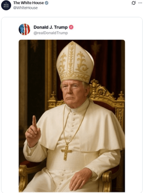 امریکی صدر ڈونلڈ ٹرمپ نے اپنے ٹروتھ سوشل پلیٹ فارم پر پوپ کے لباس میں اپنی ایک تصویر پوسٹ کی ہے انہوں نے مذاق میں کہا کہ وہ اگلے کیتھولک پوپ بننا چاہتے ہیں۔ واضح رہے کہ ٹرمپ نے پوپ فرانسس کے جانشین کے انتخاب کے لیے کارڈینلز کے اجلاس سے چند روز قبل رواں ہفتے صحافیوں سے مذاق کرتے ہوئے کہا تھا کہ وہ اگلے پوپ بننا چاہتے ہیں۔ غیر ملکی خبر رساں ادارے کے مطابق صدر ٹرمپ کو مصنوعی ذہانت سے تیار کردہ رنگین تصویر میں دیکھا جا سکتا ہے جس میں ان کی دائیں انگلی آسمان کی طرف اشارہ کر رہی ہے انہوں نے پوپ کی ریگیلیا پہن رکھی ہے جس میں سفید لباس سونے کا مصلوب پینڈنٹ اور میٹر ٹوپی شامل ہے۔ٹرمپ نے گزشتہ ہفتے پوپ فرانسس کی آخری رسومات میں شرکت کی تھی یہ اقتدار میں واپسی کے بعد ان کا پہلا غیر ملکی دورہ بھی تھا۔تقریباً 20 فیصد امریکی خود کو کیتھولک قرار دیتے ہیں اور نومبر میں ایگزٹ پولز سے پتہ چلتا ہے کہ انہوں نے ٹرمپ کے حق میں تقریباً 60 فیصد ووٹ دیے۔کارڈینلز 7 مئی کو ویٹی کن کے سسٹین چیپل میں نئے پوپ کے انتخاب کے لیے ایک اجلاس میں جمع ہوں گے۔