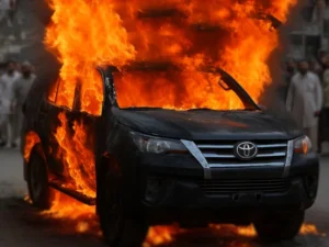 کراچی کے علاقے گلشن اقبال مسکن چورنگی کے قریب افسوسناک ٹریفک حادثہ پیش آیا۔ اتوار کی شب گلشن اقبال تھانے کی حدود میں ڈسکو بیکری سے مسکن چورنگی کی جانب جانے والی تیز رفتار فارچیونر گاڑی گرین بیلٹ توڑتے ہوئے مخالف سمت میں بیٹھے شہریوں سے جا ٹکرائی۔ گاڑی کی ٹکر سے ایک شخص جاں بحق جبکہ دوسرا زخمی ہوگیا۔حادثے کے بعد موقع پر موجود افراد مشتعل ہوگئے اور انہوں نے گاڑی میں توڑ پھوڑ کرنے کے بعد آگ لگادی۔ ترجمان ایس ایس پی ضلع شرقی کے مطابق حادثے میں جاں بحق ہونے والے شخص کی شناخت 42 سالہ سلیم کے نام سے ہوئی ہے جبکہ زخمی ہونے والا شہری ذیشان ہے جسے فوری طبی امداد کے لیے اسپتال منتقل کردیا گیا، تاہم حالت خطرے سے باہر بتائی جارہی ہے۔ایس ایچ او گلشن کے مطابق گاڑی کے ڈرائیور سمیت تین افراد کو حراست میں لے کر تھانے منتقل کردیا جہاں ان سے مزید تفتیش کی جاری ہے۔ ابتدائی تحقیقات کے مطابق گاڑی تیز رفتاری کے باعث بے قابو ہو کر گرین بیلٹ کراس کرتے ہوئے مخالف سمت میں جا پہنچی جہاں ہوٹل کے باہر کرسیوں پر بیٹھے دو افراد کو کچل دیا گیا تھا۔ تحقیقات کے دوران حادثے کا سبب بننے والی گاڑی کو آگ لگانے میں مبینہ طور پر ملوث 3 افراد کو بھی حراست میں لے لیا گیا ہے۔