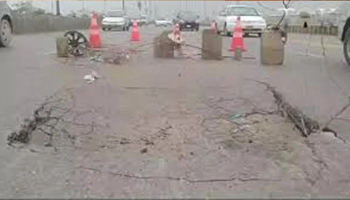 شارع فیصل پر ڈرگ روڈ سے ائیر پورٹ جانے والے اہم ناتھا خان پل پر ایک بار پھر گڑھا پڑگیا ہے۔شارع فیصل ناتھا خان برج پر گڑھا پڑنے کے باعث ٹریفک کی روانی متاثر ہوئی ہے اور شہریوں کو شدید مشکلات کا سامنا ہے۔گڑھےکی مرمت کرنے والے انجینئر علی شیرکا کہنا ہےکہ مرمت کا کام مکمل ہونے میں کم از کم 10 دن لگ سکتے ہیں۔ایئرپورٹ کی جانب شاہراہ فیصل پر ٹریفک رک رک کر جا رہی ہے جس سے سفر کرنے والوں کو بے حد پریشانی ہو رہی ہے۔ انجینئر علی شیر کا کہنا ہےکہ ناتھا خان پل کے نیچے سے نشےکے عادی افراد بیم سے سریا نکال رہے ہیں۔ سریا مسلسل چوری ہونے کی صورت میں ناتھا خان پل مزید مقامات سے ٹوٹ سکتا ہے۔